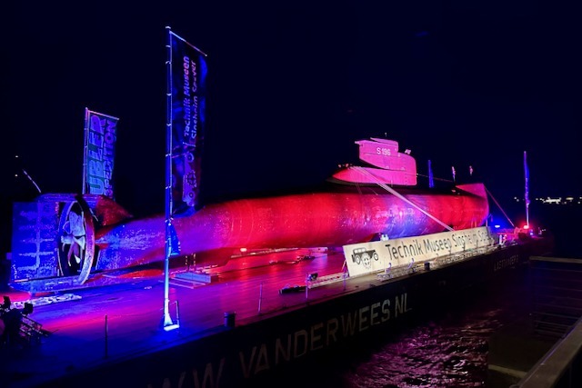 Nachdem U17 schließlich noch unter der Schiersteiner Brücke und einen Wasserbogen der dortigen Feuerwehr passiert hatte, dürften Kapitän Ben Kick und seine Crew von der “Pieter van der Wees” nach dem Festmachen sicher einen schönen Abend mit “lekker Riesling” gehabt haben. Jedenfalls wurde das Boot bei seiner nächtlichen Rast in Mainz (ganz sicher nur zu Ehren unserer mutigen Helden) bunt beleuchtet und bestaunt. Ach, hätten wir doch nur unseren Gästesteg für U17 frei gehabt!
