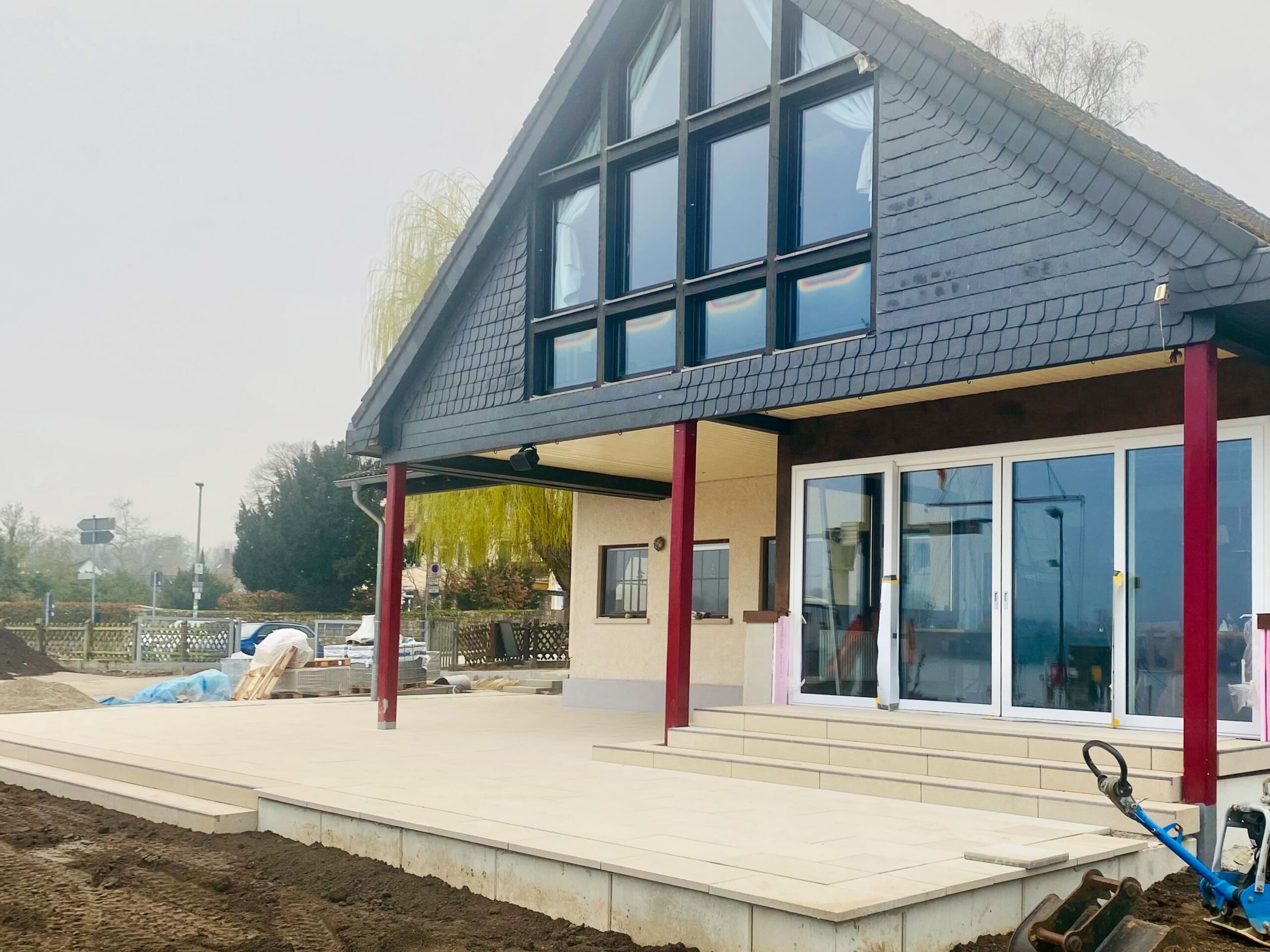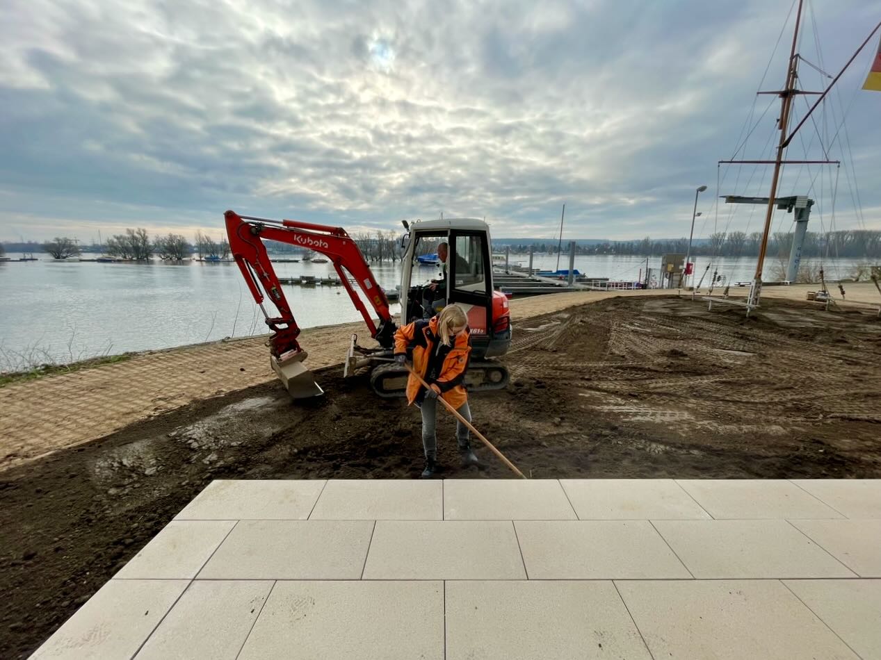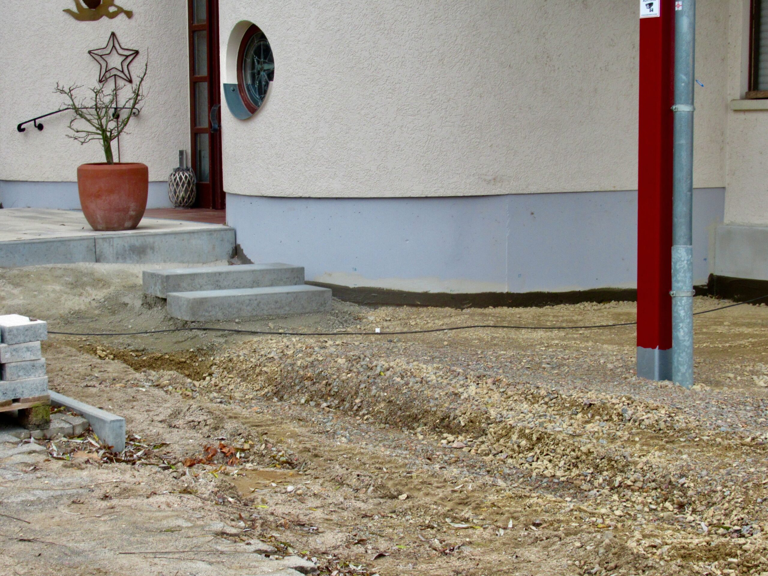• Dann wurde neu angeliefert, gebaut, verlegt, planiert, gemauert und verputzt (wir erinnern uns an die langsam steigender Vorfreude auf das Endergebnis).